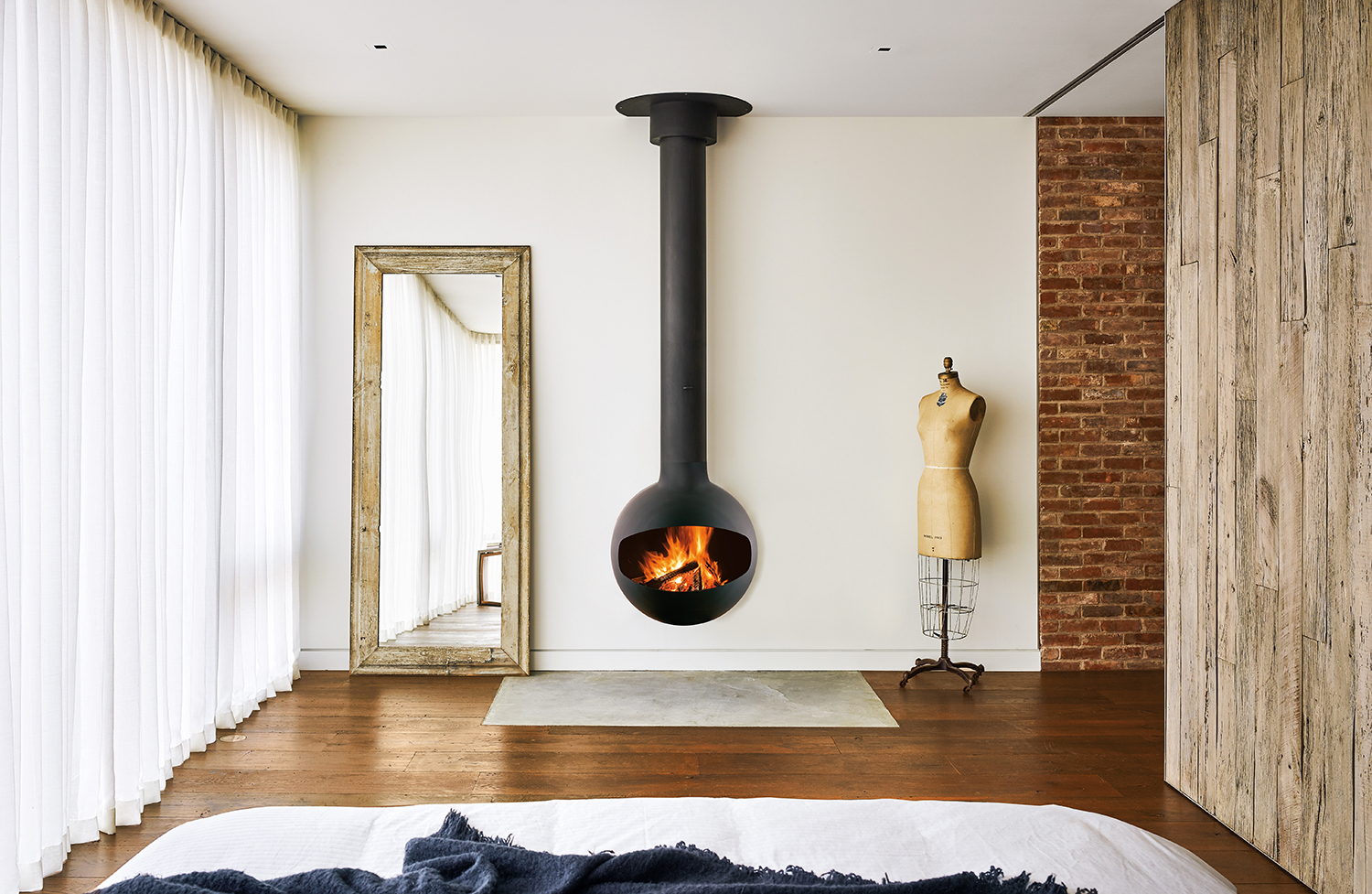 The wall version of the free-standing Bathyscafocus, this model's elegant yet discreet form, heat efficiency and easy installation combine to create an intimate and warm atmosphere in a range of different settings, from mountain ski chalets to city studios.